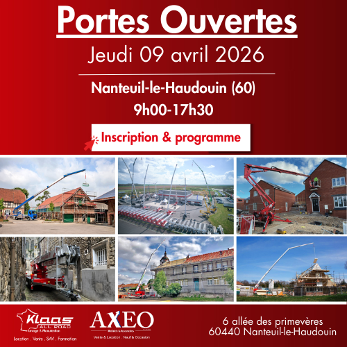 Le jeudi 9 avril 2026, poussez les portes de Klaas All Road accompagné d'AXEO et découvrez la performance en action lors de notre journée portes ouvertes à Nanteuil.